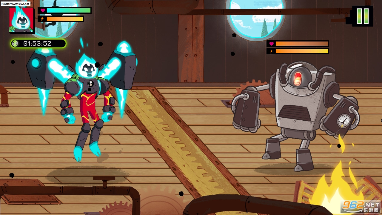 蒸汽机器人Steam Smythe已经解放了一支蒸汽朋克机器人军队!现在本10必须使用他的异能来阻止他们。扮演XLR8,Omni增强加热板或冲击岩石,当你面对一个永不停止的机器人敌人的攻击