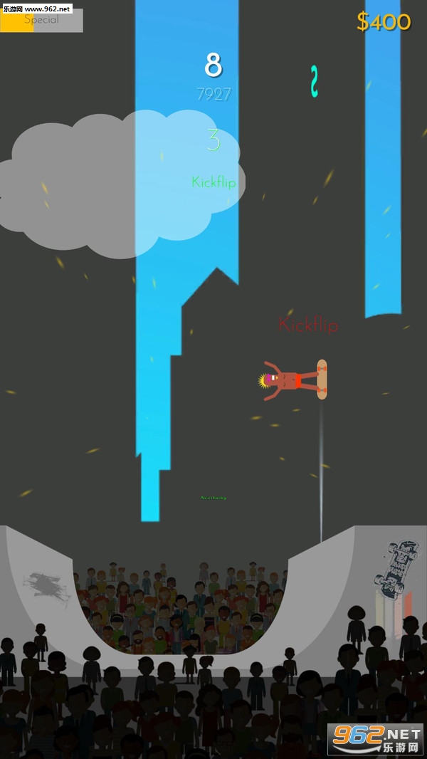 3、赢得台下观众的喝彩欢呼,同时也能获取丰厚奖励解锁更多酷炫滑板。