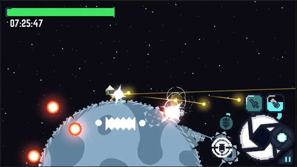 精美的画面设计:游戏为玩家呈现出一个个美轮美奂的星球场景,每个星球都拥有独特的造型、地貌和色彩,细节之处处理得极为细腻,无论是星球表面的纹理、大气层的效果,还是太空中的光影变化,都让人仿佛身临其境。同时,各种爆破效果和武器特效也十分酷炫,为游戏增添了强烈的视觉冲击。