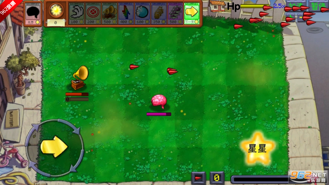2、不同于其他类型的植物大战僵尸游戏改版,在这里你要做的就是上下左右灵活移动,攻击入侵庄园的僵尸大脑。