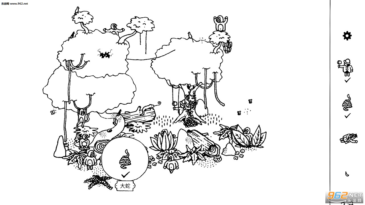 1、以找取画中指定对象为游戏玩法,手绘黑白界面都是线条人物看起来十分困难。