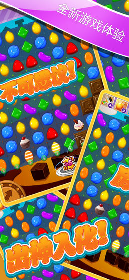 轻触图标,使其相同颜色的糖果块消除掉,就能得分;