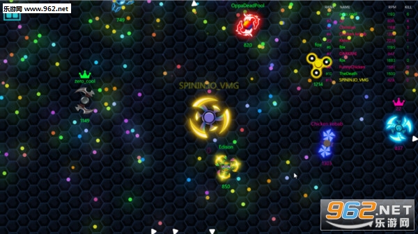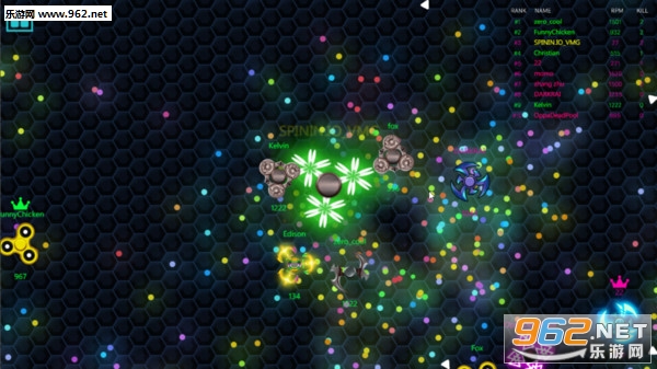玩法和之前io游戏的玩法类似,都是一个多人竞技类的游戏,画风也同样的魔性,在这个游戏中玩家需要控制自己的陀螺然后不断的把别人的陀螺撞出场外,这个游戏需要一定的走位,因为我们不能被别人撞出去,在保护自己的同时把别人撞出去获得整个比赛的最终胜利。