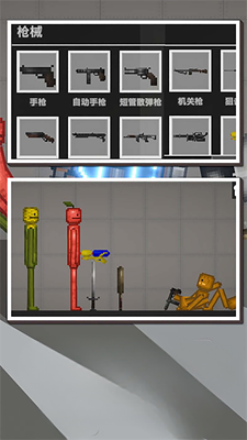 4、这里有不同的人物、武器、炸弹、刀剑、注射器、装甲等等资源供玩家们体验;