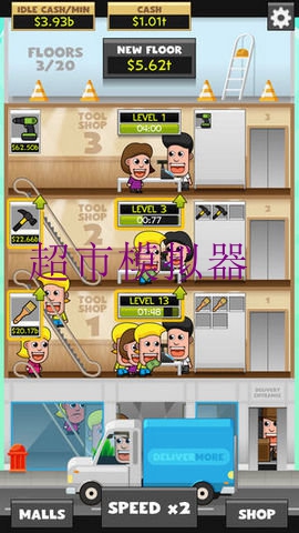 2、打造最雄厚的商业帝国,招募更多能干的收银员,购买解锁更多商品,全新的放置养成类玩法;