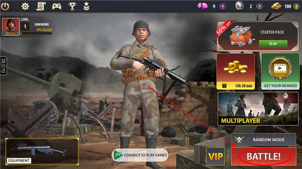 1、启动游戏后,在主界面找到并点击“battle”按钮;