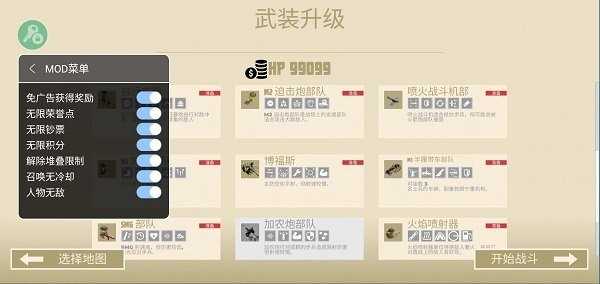 游戏目前涵盖数十种级别、4种被动技能和5种主动技能,每一轮可以选择不同的部队类型,随着游戏进度的推进,还将开放不同升级道具。你也可根据战争形势排兵布阵。
