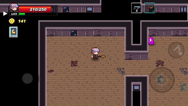 这款游戏在玩法上有些类似某些欧美独立作品,但也有自己的特色。它包含了类似其他热门地牢射击游戏的操作方式,比如双摇杆控制、换弹机制等。同时加入了金币获取与天赋收集系统,即使是近战攻击也需要消耗子弹资源(这点确实有些特别)。