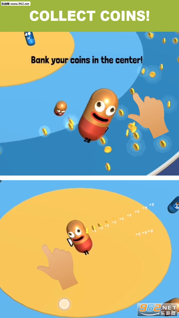 一款趣味io类竞技游戏,游戏中玩家需要控制自己的胶囊去奔跑,在地图上不断收集金币来提升自己的体积哦,蓝色胶囊和黄色胶囊两种胶囊形象自由选择,享受趣味大作战的乐趣,玩家收集的金币越多,胶囊的体积也越大哦,你的成绩也越好。
