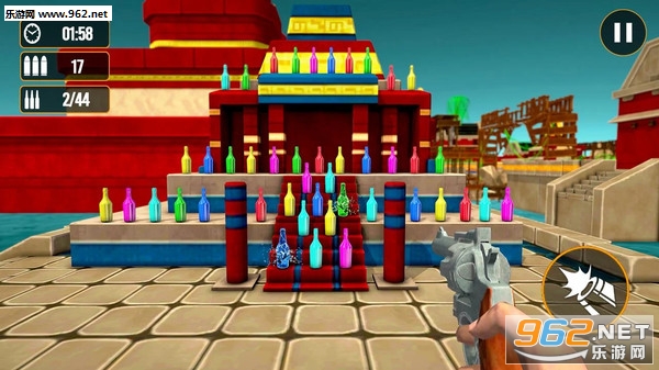 1、准确的射击,打中所有瓶子才能赢得胜利。