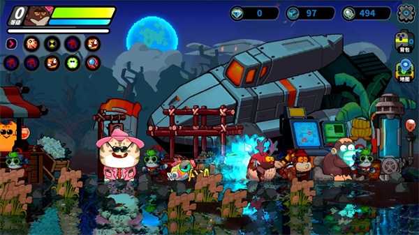 不只有可爱猫猫!狡黠龙鸟、狂暴猩猩、呆萌火龙果……每个角色都有专属武器、独特技能和性格魅力,格斗、射击、魔法、闪避、卖萌全都不在话下。