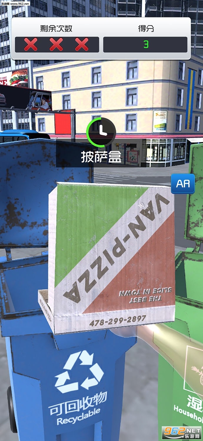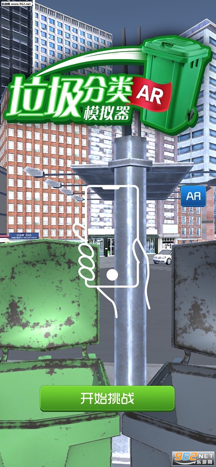 1、真实的AR技术还原整个画面,点击开始就会进入到垃圾桶旁边,看到各种不同类型的垃圾在地上;