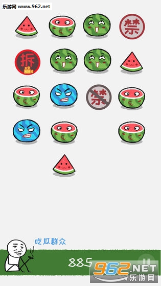 趣味的合并消除游戏,看着西瓜一个个的爆炸,碎片乱飞,释放心中的压抑情绪,游戏玩法简单,不断的合并获得完整的西瓜,让其爆炸,不让西瓜触底即可,喜欢的朋友可以下载试试。