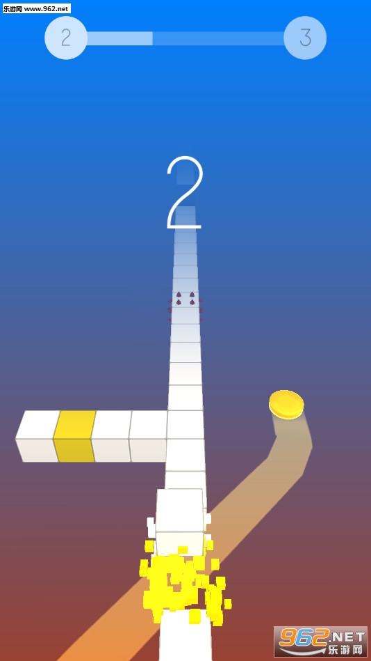 1、这是一个简单而有趣的闯关,控制你的黄色圆盘打破突破障碍前进;