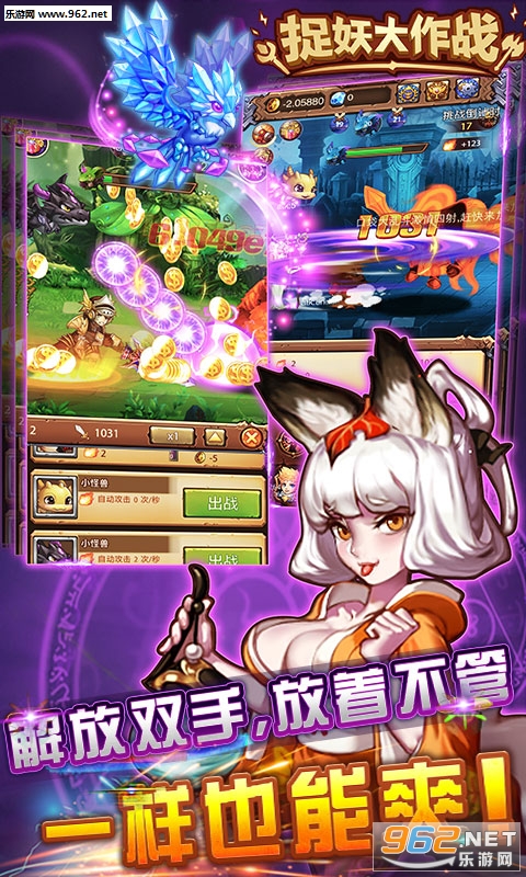 《捉妖大作战》是一款的放置类挂机冒险游戏,精美的游戏画面、新颖有趣的玩法、超乎想像的简单操作,感受即好玩又轻松的全新挂机体验。带宝宝、战轮回、闯兽潮、夺圣物、爬天梯,疯狂点击就能爆发出超强战力,24小时不间断升级轻松超神!