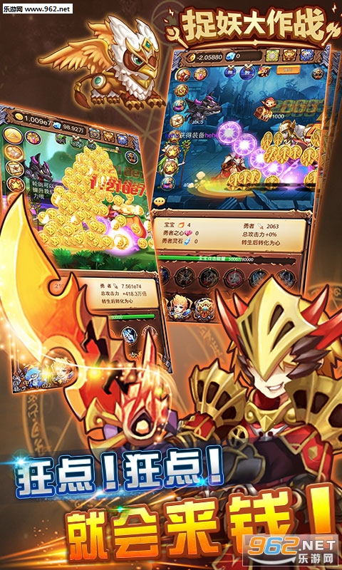 趣味的放置挂机游戏,不断的战斗前行,收集资源,强化提升属性,小编带来的是捉妖大作战飞升版,福利多多。上线可以获得大量的钻石金币,还有着福利礼包等,喜欢的朋友可以下载试试。