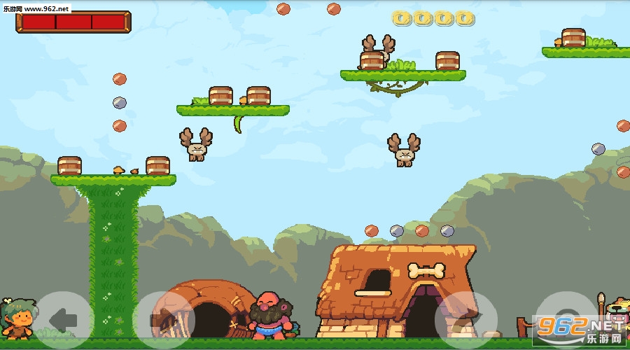 《复古石器时代》(Stone Age Platformer)是一款卡通像素风格的复古冒险闯关游戏,游戏中玩家可以选择一名原始人角色开始游戏,在一个场景中练习捕猎,收集金币和食物,食物能够恢复你的血量,金币可以解锁跟多人物,赶快下载体验吧!