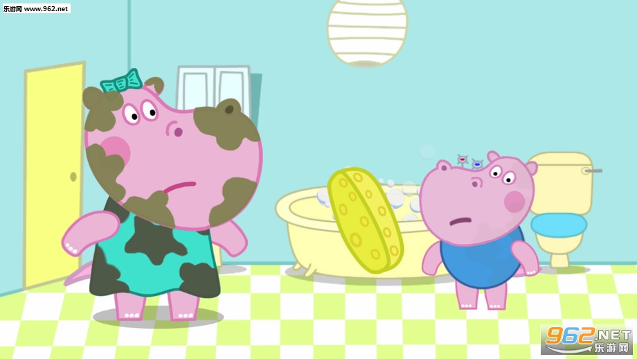 回家仔细清洗的孩子们。你要他们洗澡,以防止河马妈妈看这种肮脏的孩子。