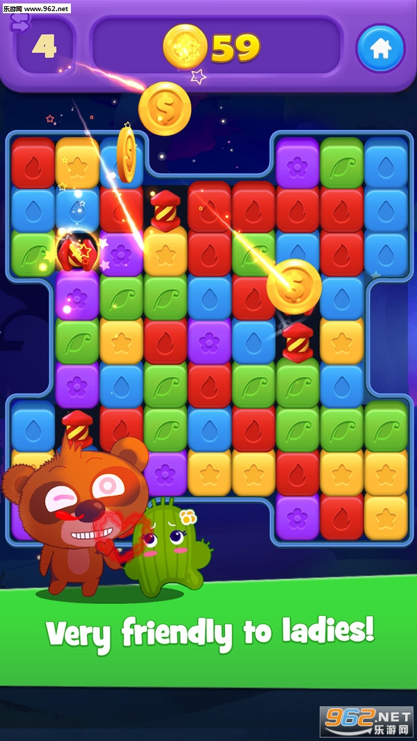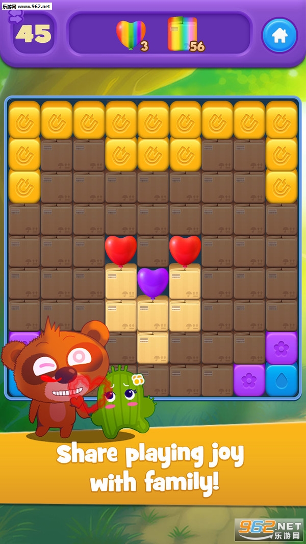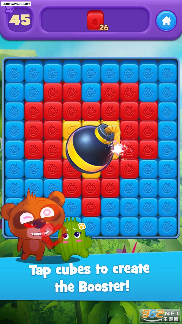 玩家在游戏中需要帮助这个可爱的汤姆熊,它现在心情非常的不愉快你需要让它能够开心起来,你需要点击相同的颜色的方块不断的让这些方块进行刺激的消除游戏,你需要不断的达到游戏中的要求完美的通过关卡,合理的使用各种出现的道具更加刺激的游戏。
