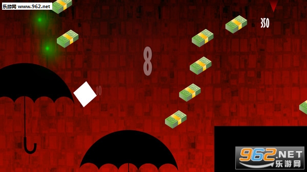 2、关卡设计非常巧妙,例如将曲面的伞作为小方块的降落平台,还有弹簧等等干扰玩家,增加了游戏的难度,让游戏具有挑战性。
