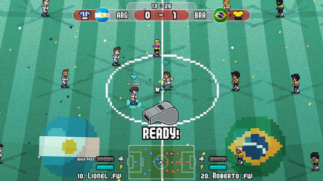 1、游戏采用了经典的像素风格图形,呈现出怀旧的游戏感受,让玩家沉浸在足球比赛的世界中。