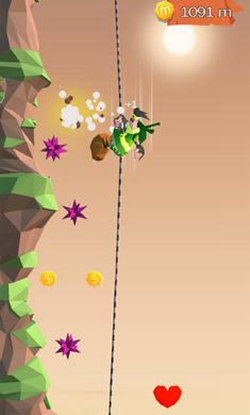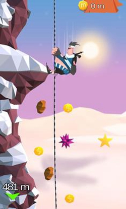 《绳索垂降安卓版》是一款画面清新的下落类敏捷游戏,游戏中玩家将控制一个小人从悬崖上下落,途中会出现一些陷阱危险,还有着一些金币,玩家需要敏捷的下落,躲避障碍物,收集金币,可以利用金币来解锁其他的角色进行体验。