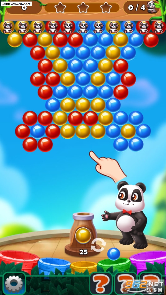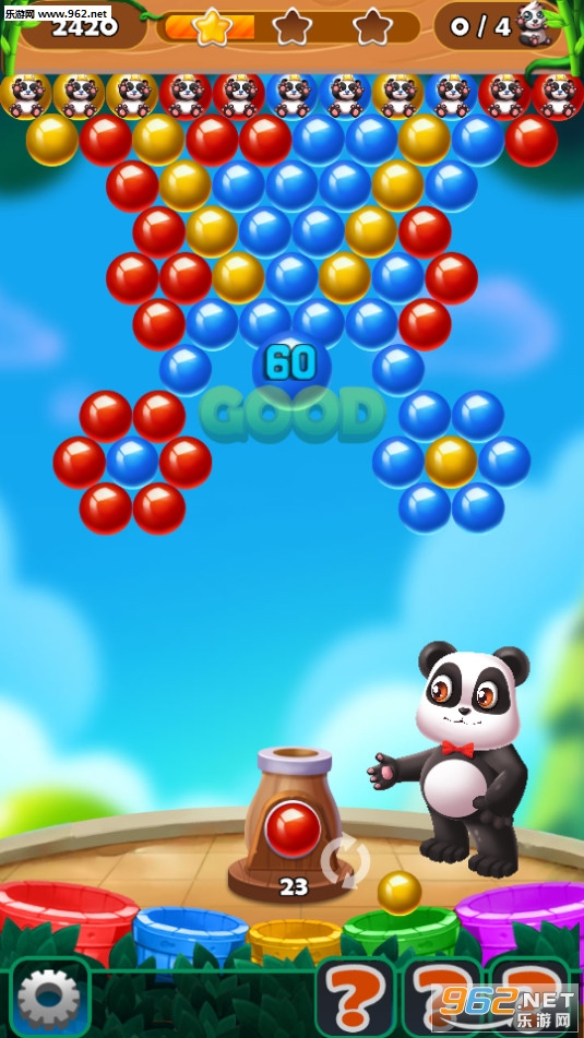 《熊猫泡泡猎手安卓版》是一款非常好玩并且十分有趣的休闲类消除手游,新颖可爱美观的游戏画面,游戏中玩家需要控制炮台发射各种颜色的泡泡,尽可能多的向相同颜色泡泡的位置发射,使它们消除获得分数和各种道具,游戏关卡众多,快来帮助可爱的熊猫消除泡泡吧!