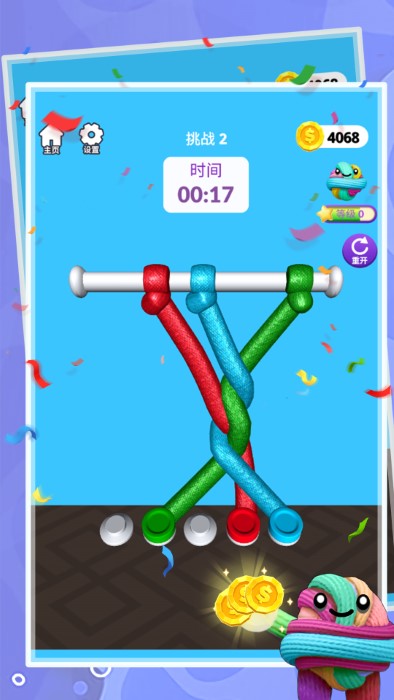 1、非常考验玩家的益智能力,绳子越多解开的难度就会更高,