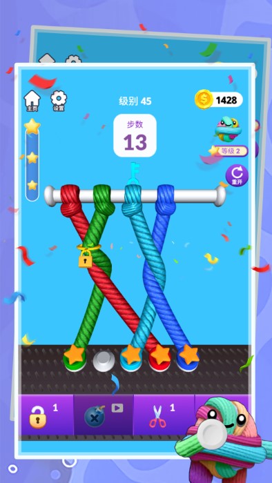2、通过游戏可以了解得绳索缠结的方法,以及各种解法,让你成为绳索大师。