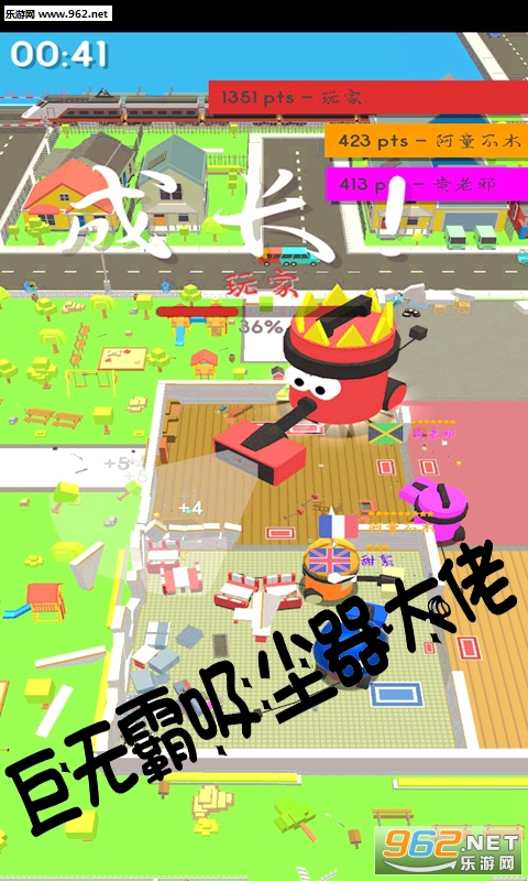 《拥挤的像素城市安卓版》是一款有趣的io吞噬游戏,游戏中玩家要控制你的吸尘器到处吸吸吸,将一切你能吸收的东西全部吸到你的肚子里,然后你就可以获得成长了,你的吸尘器额容量越大,能够吸收的物体就越大,你甚至还可以将其他比你小的吸尘器给吞噬掉。
