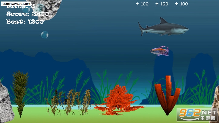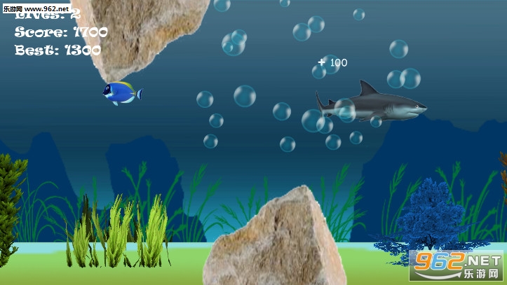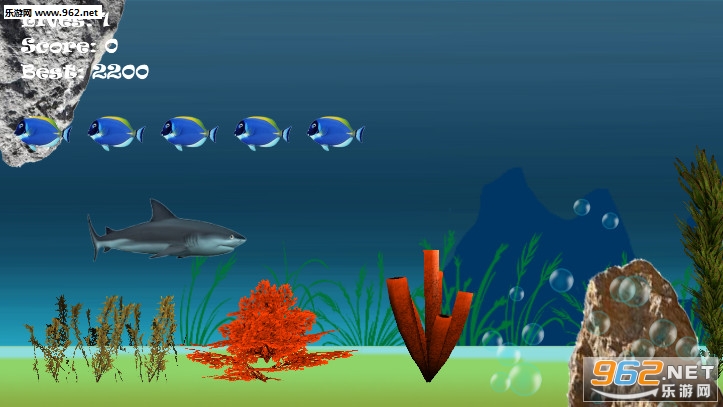 1、在深海中,有许多海洋生物潜伏并寻找猎物,你必须导航鲨鱼通过大海;
