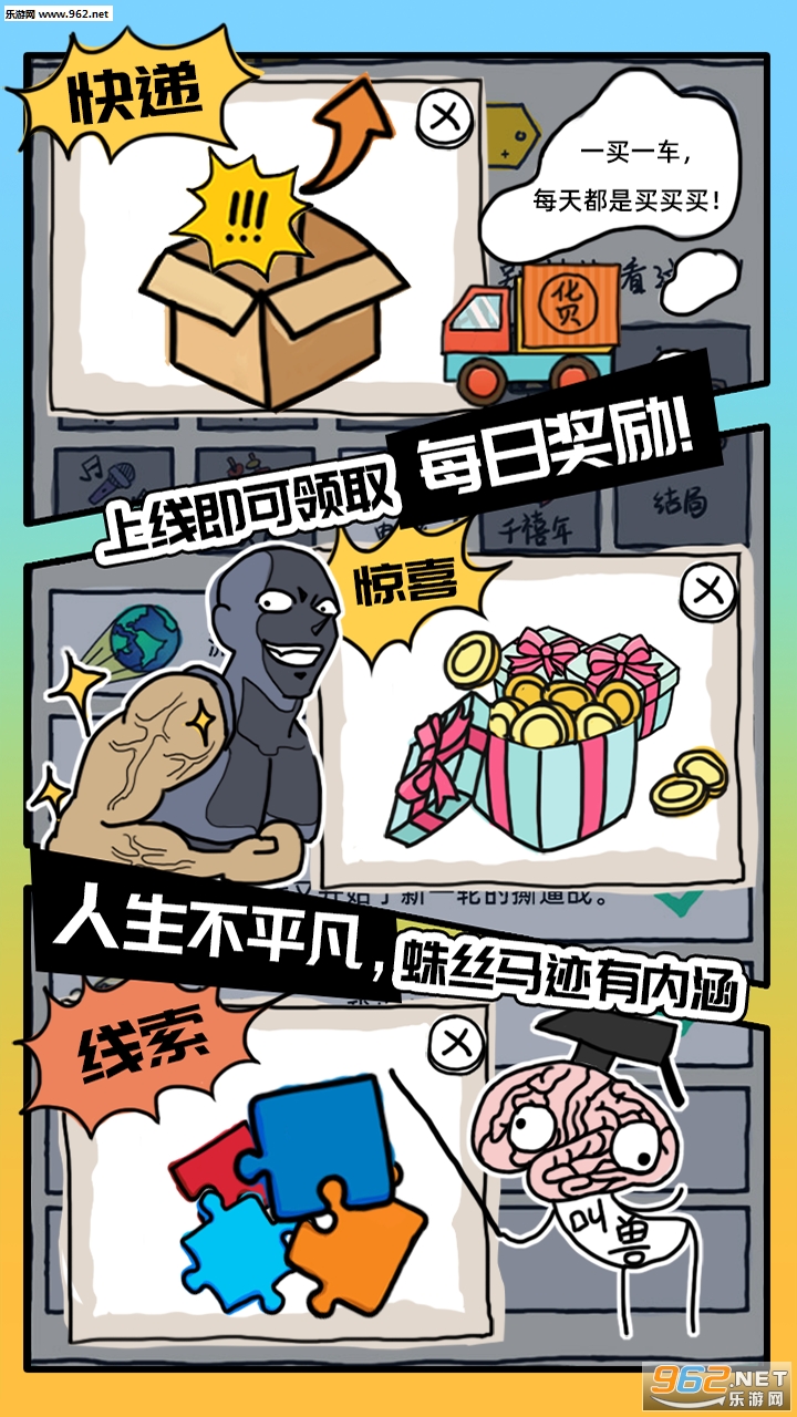 《有钱了不起安卓版》是一款搞怪漫画风剧情放置类游戏,游戏的操作很简单,玩家在这里需要通过撕日历的方式来获得相应的金币,解锁更多的美食图鉴和强大的撕日历技能,玩法非常简单,每页日历都对应着搞笑的事件,对游戏感兴趣的话就来下载吧!