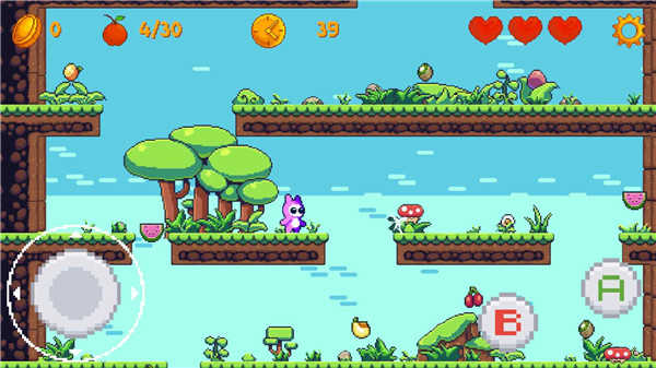 2、进入游戏后左边控制角色左右移动,右边是攻击键和跳跃,当走到底后,长按【A】键即可超级跳跃,这样就可以跳到更高一层