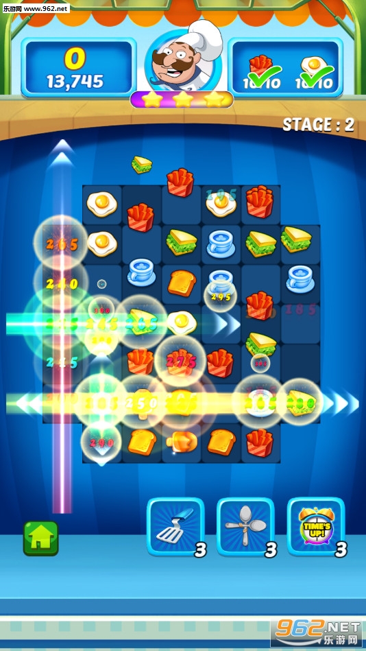 趣味的三消游戏,玩家需要移动美食,让至少三个相同的美食连成一条线进行消除,一次消除四个或者五个相同的美食可以获得特殊的美食,喜欢的朋友可以下载试试。