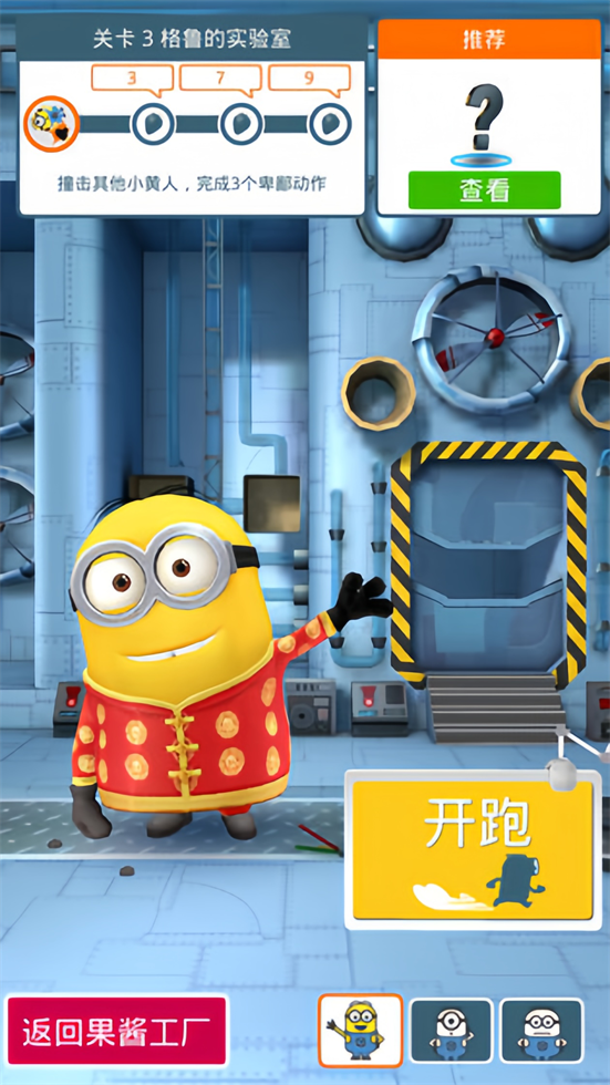 4、另外,在小黄人赛跑”模式中,撞到障碍物也不会 GAME OVER,但会大幅减速,让你落后其他小黄人,千万要注意哦!只有夺得小黄人赛跑”的终极宝座,才能成为史上最邪恶的坏蛋!你准备好了吗?