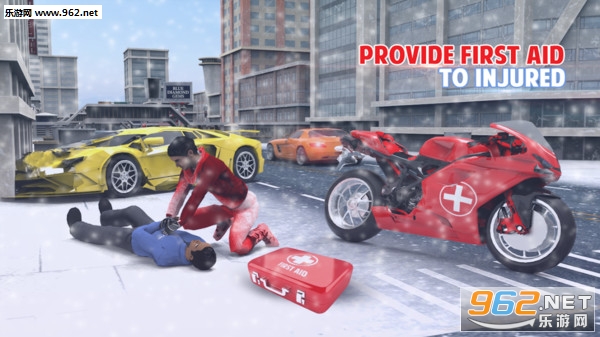 1、救护车司机模拟器3D冬季雪救援完整的行动,你需要采取紧急呼叫1122从紧急现场医院的事故救援立即抢救;