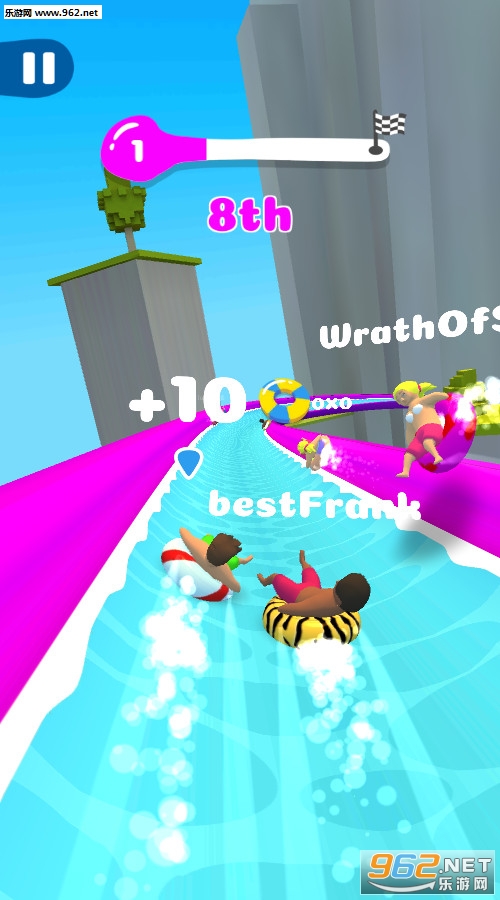 《水滑梯大战》(Slippery Slides)是一款非常有趣的休闲竞速游戏,游戏中你需要在水滑梯竞速中获得名次但是你总是最后一个出发,这就需要你有着不错的水滑梯技术,滑梯上还有各种有趣的装置,拿到靠前的名次获得奖励,解锁更多人物。