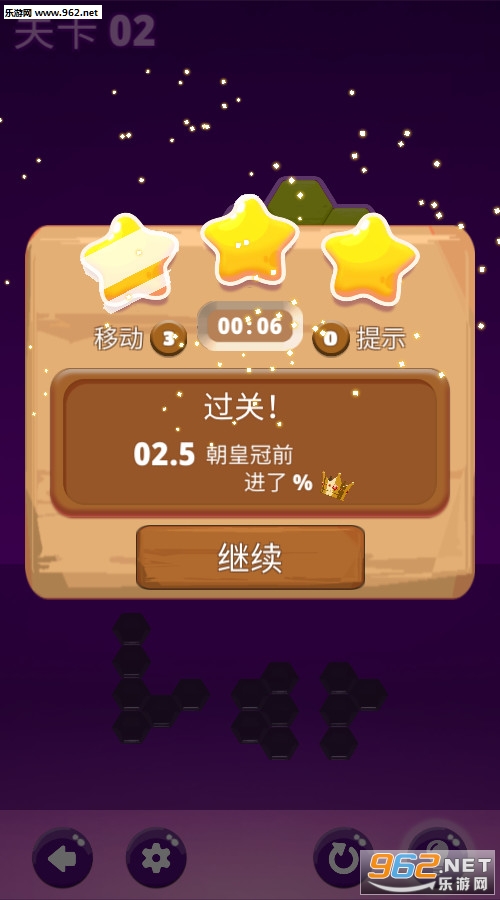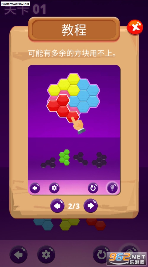 《六角拼图英雄》是一款简约风格的休闲闯关游戏,游戏中玩家将把给出的六角板块放进给出的板子中,必须要刚好合适,而且给出的板块不能进行旋转,也有不需要的板块,游戏的操作简单容易上手,玩法有趣,还有着丰富的关卡等你挑战,你能成为六角英雄吗?