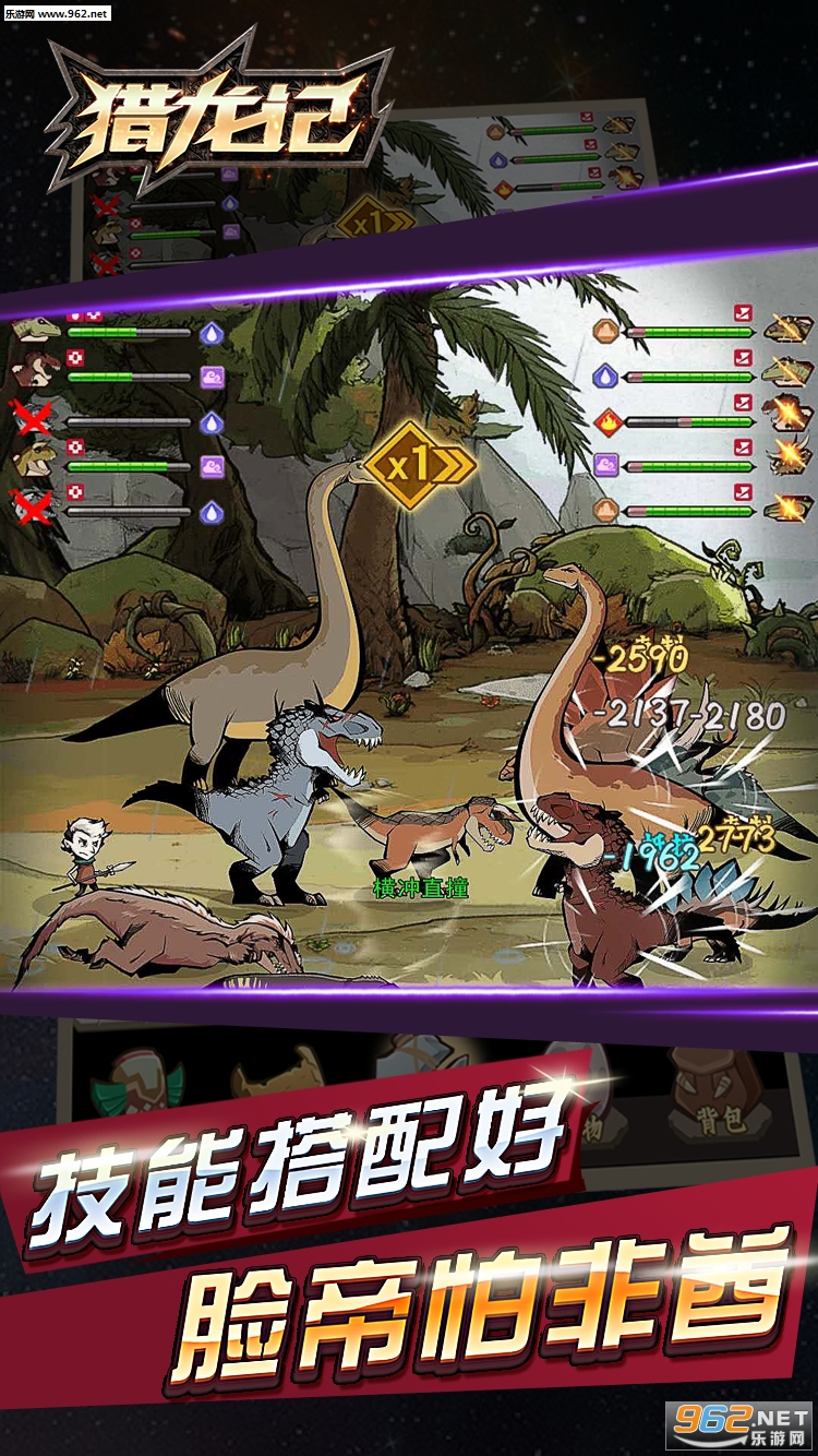 《猎龙记安卓版》是一款回合制战斗策略手游,游戏采用复古的画面设计,以异世界作为背景场景,玩家在游戏中可以自由的繁殖恐龙,搭配技能装备,在这里热血战斗,争做异世界的霸主,玩法多多,还能支持挂机放置,感兴趣的话就来下载吧!