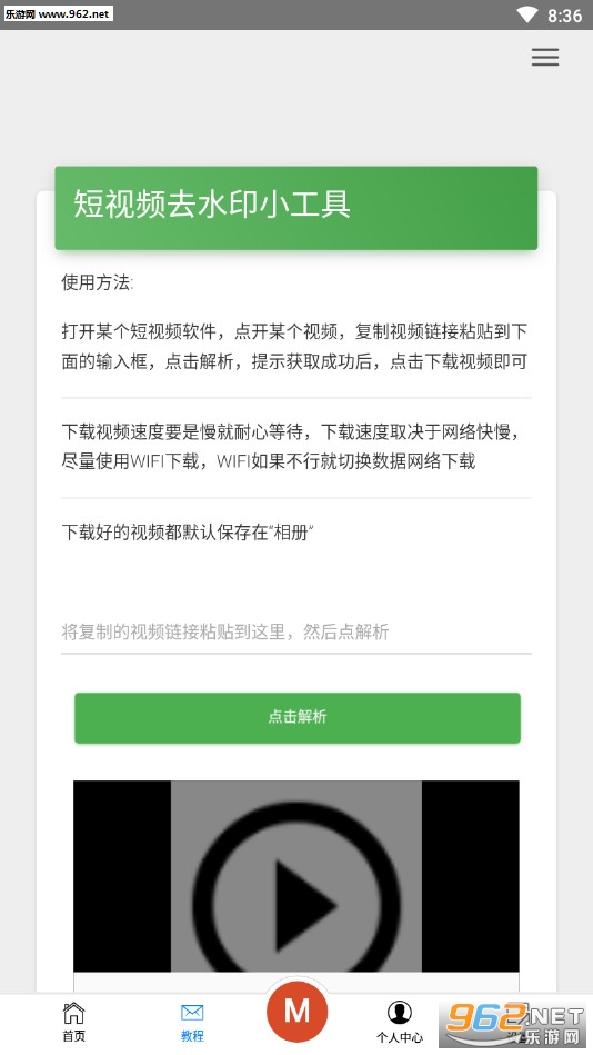 使用办法直接复制视频链接在里面解析,然后下载视频,视频会自动保存到“相册”。