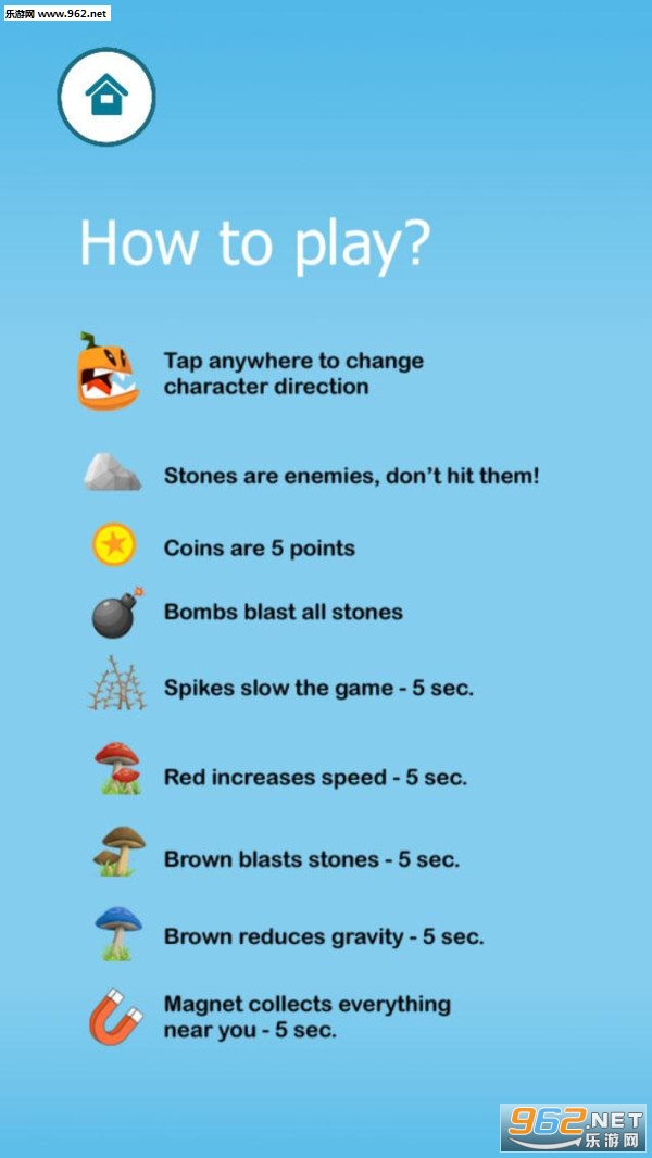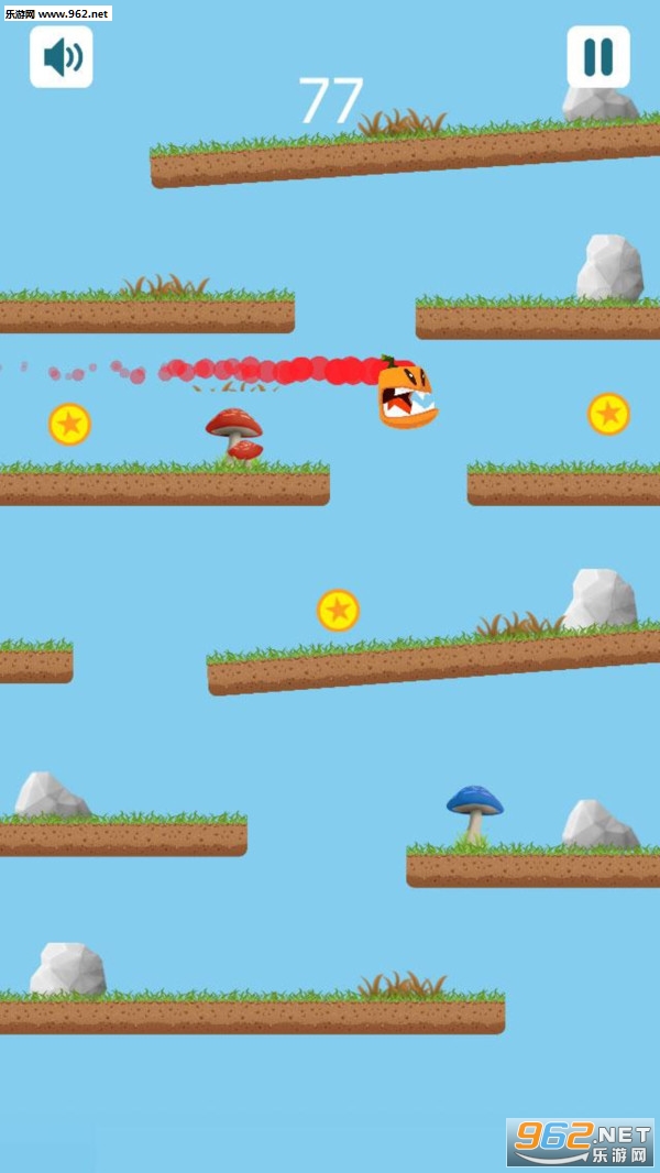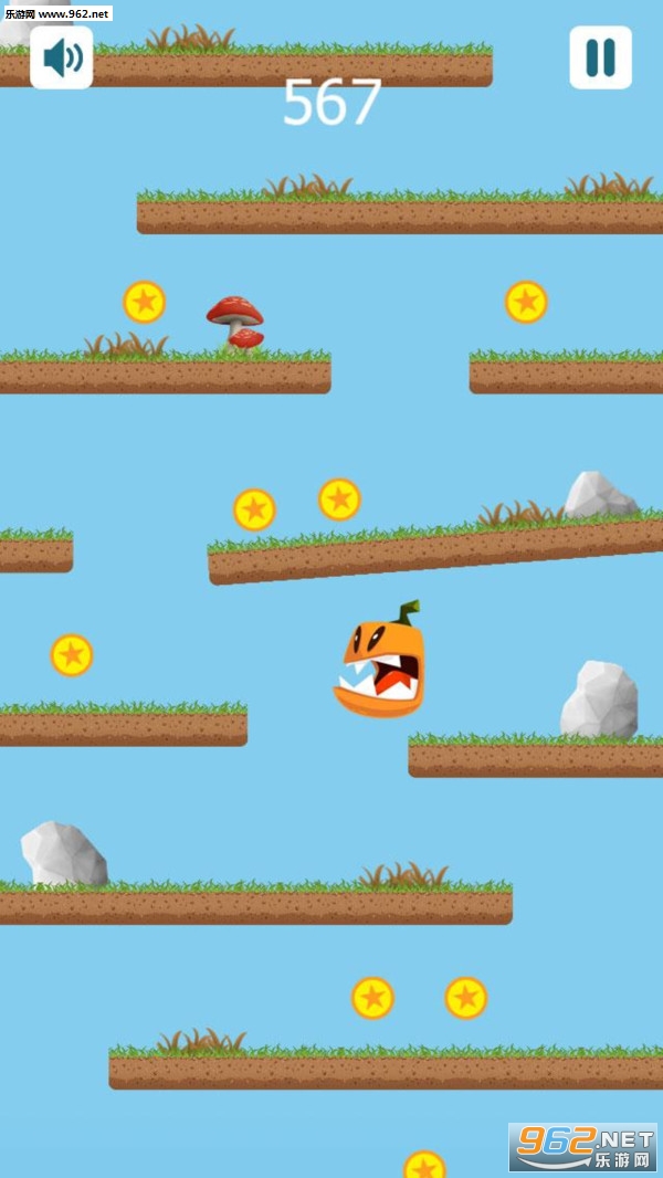 南瓜先生是一款非常有趣的休闲类小游戏,游戏的画面场景非常的简洁,但这并不影响它有趣的地方。玩家在游戏中将要控制南瓜先生来进行跳跃,并且躲避沿途的一些障碍,完成通关,并尽可能的在沿途中收集金币,会帮助你更加简单的通过关卡哦!喜欢的话就快来下载体验吧!