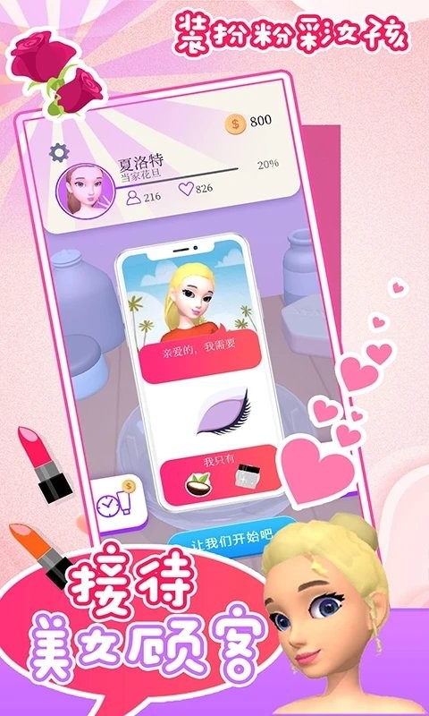 作为一个专业的化妆师,细心的为每个公主,完成不同的操作进行装饰;