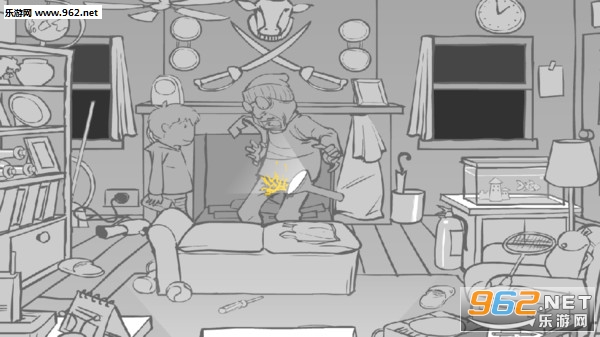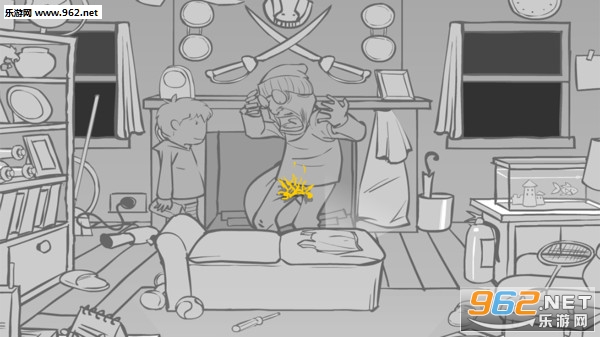 3、自由操作玩法,看懂小偷准备干什么,利用身边的东西教训他。