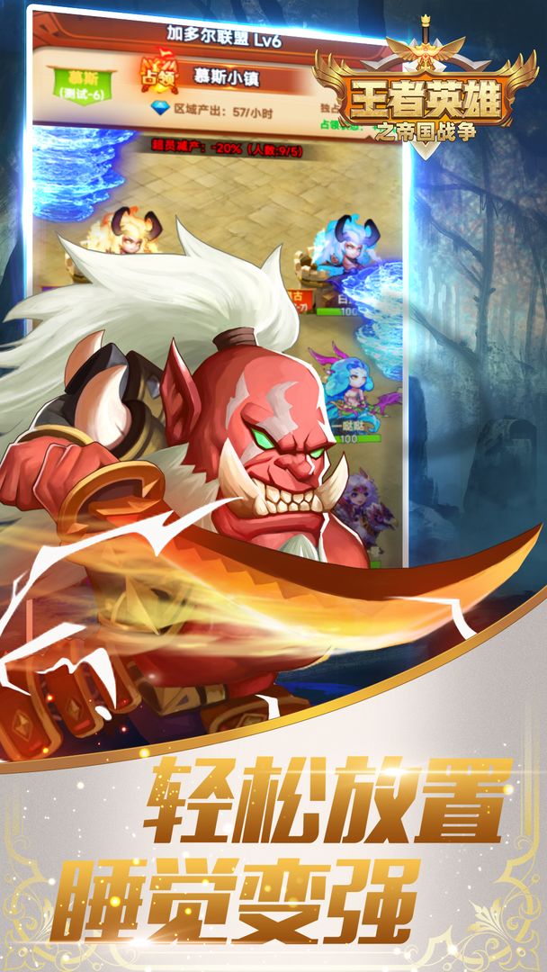 王者英雄之帝国战争是一个魔幻二次元放置休闲养成的卡牌手游,超多个不同阵营的英雄,数以百计的个性技能,包含放置、战斗、地下城、英雄任务、收集、养成、竞技场、公会,海量内容等你来体验!