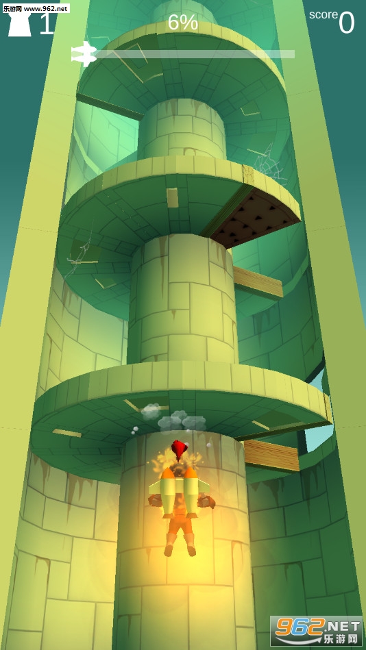 《喷射背包骑士安卓版》是一款画面清新的向上冒险的休闲手游,游戏中玩家将控制一个骑士冒险,可以在天空中向上飞行,旋转柱体让骑士从每个圆环叶片的缝隙中穿过去,注意有的叶片上有着钉刺等危险,撞击到游戏就结束了,达到顶端可以挑战下一个关卡。