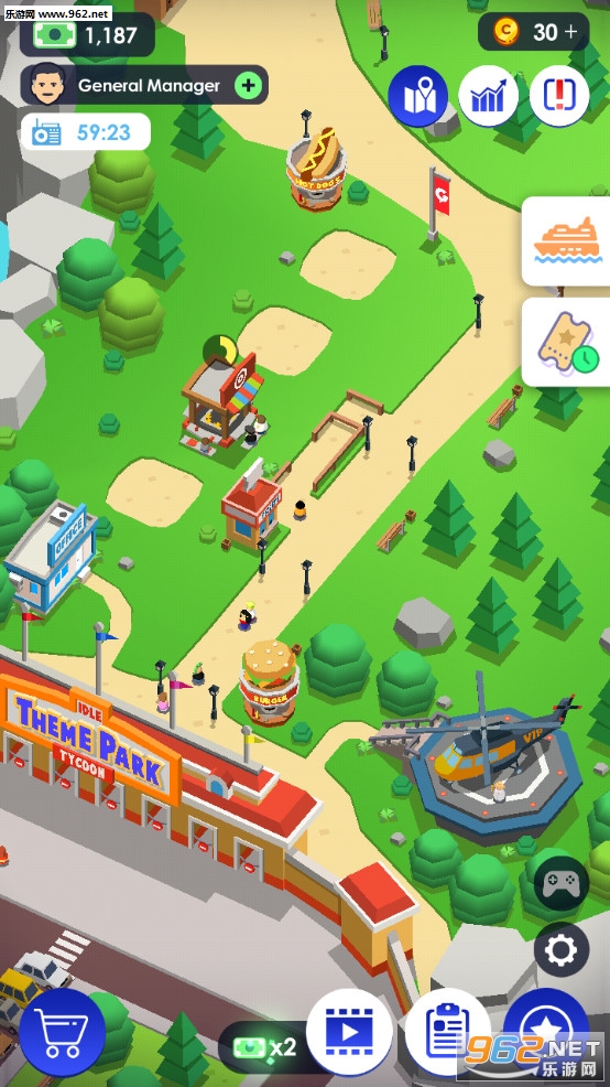 明智地管理食品区和售票亭以赚钱。扩建主题公园,以获得最惊人的游乐设施。