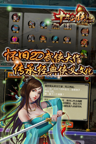《十年剑侠hd》是一款怀旧风格的2D武侠大作,这款游戏中传承了经典侠义文化,让你亲历南宋古刹重镇,拯救苍生的侠义风范,另外你还能够邂逅经典武侠美女,让你伴君闯荡笑傲江湖!经典怀旧2D武侠,多年的回忆,不变的感受。一起来体验再次热血奋战,与兄弟一起闯荡江湖的日子。熟悉的江湖,熟悉的人,熟悉的故事,都是你不容错过的回忆。