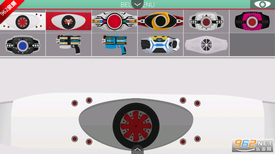 1、在假面骑士黑色帝骑变身模拟器右上方,有一个小型的腰带模拟标志,点开它在展开的列表中,能够看到有数十种不同的变身形态效果,选择其中你喜欢的添加到变身界面中。