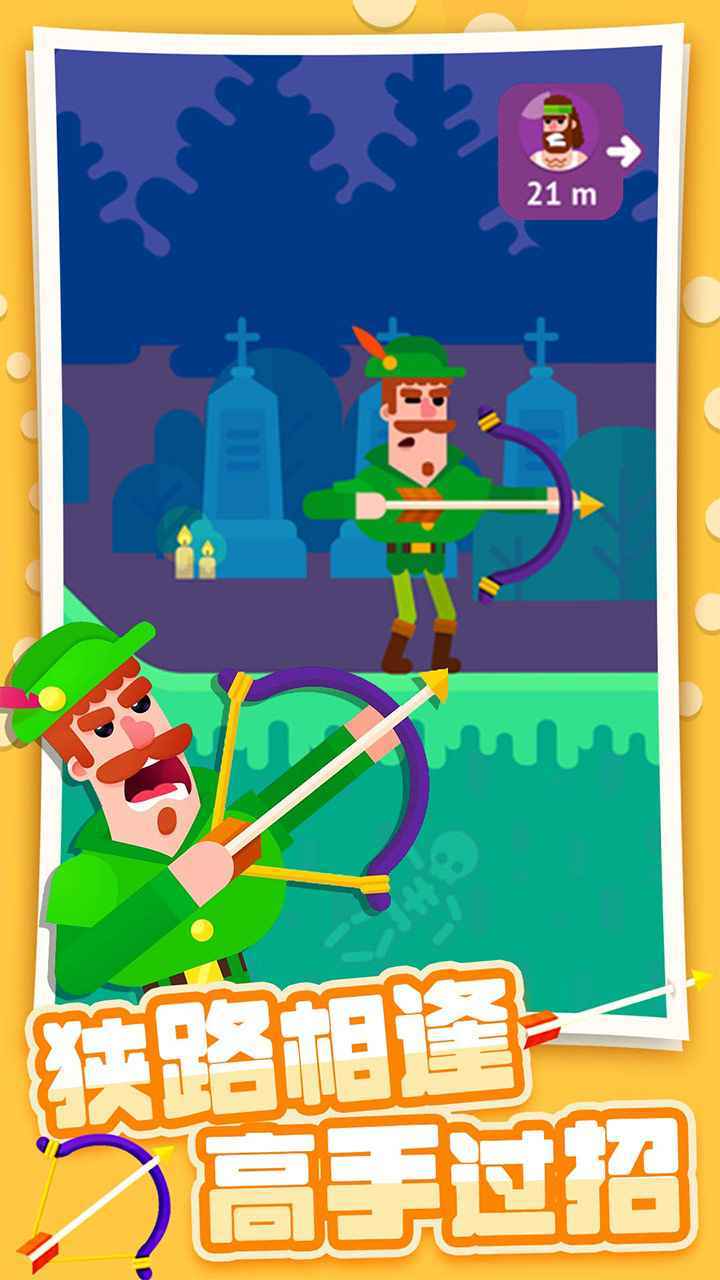 刚开始很多人玩的时候会觉得这游戏是靠运气,其实完全不是,聪明的小伙伴会在第一次射箭时记下角度和射出的位置,调整角度和力度是关键,而且在对手被击中后会往后移一段位置,记得把角度也调一下哦,掌握了规律后你就会变成一个神射手,百发百中,我已经成功了。