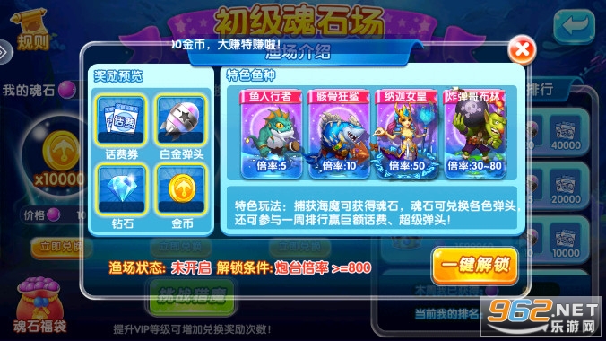 还原经典街机的捕鱼玩法,轻松直升50万炮,一炮亿金爽翻天!